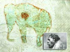 Arte rupestre do complexo de Lascaux na França, na qual o perfil do mamute com seu coração em destaque é, talvez, uma das mais antigas representações artísticas de órgãos internos de animais já encontradas pela arqueologia